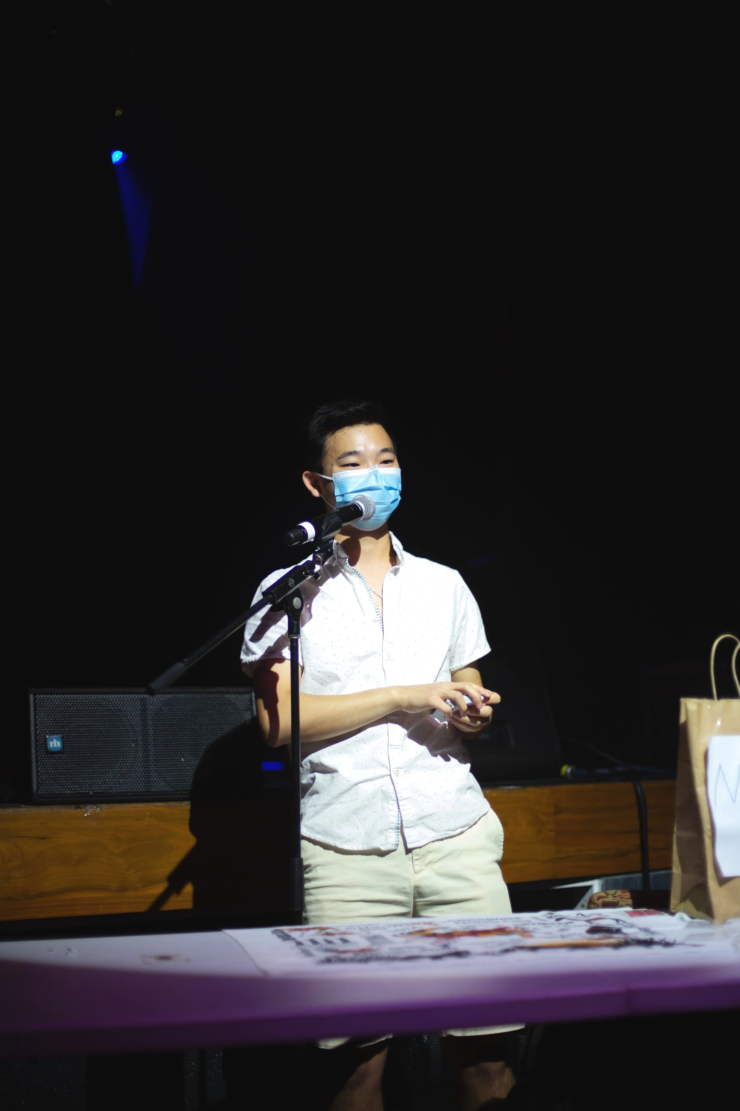 Micah Yoo, our third contestant, made his on-stage debut and performed his original song “Just”. From the professionally-layered sound production to his personal and well-written lyrics, Micah serenaded and mesmerized the audience. His presence and gestures certainly captured some hearts, and even judge Kevin Li was impressed by Micah’s phenomenal style.