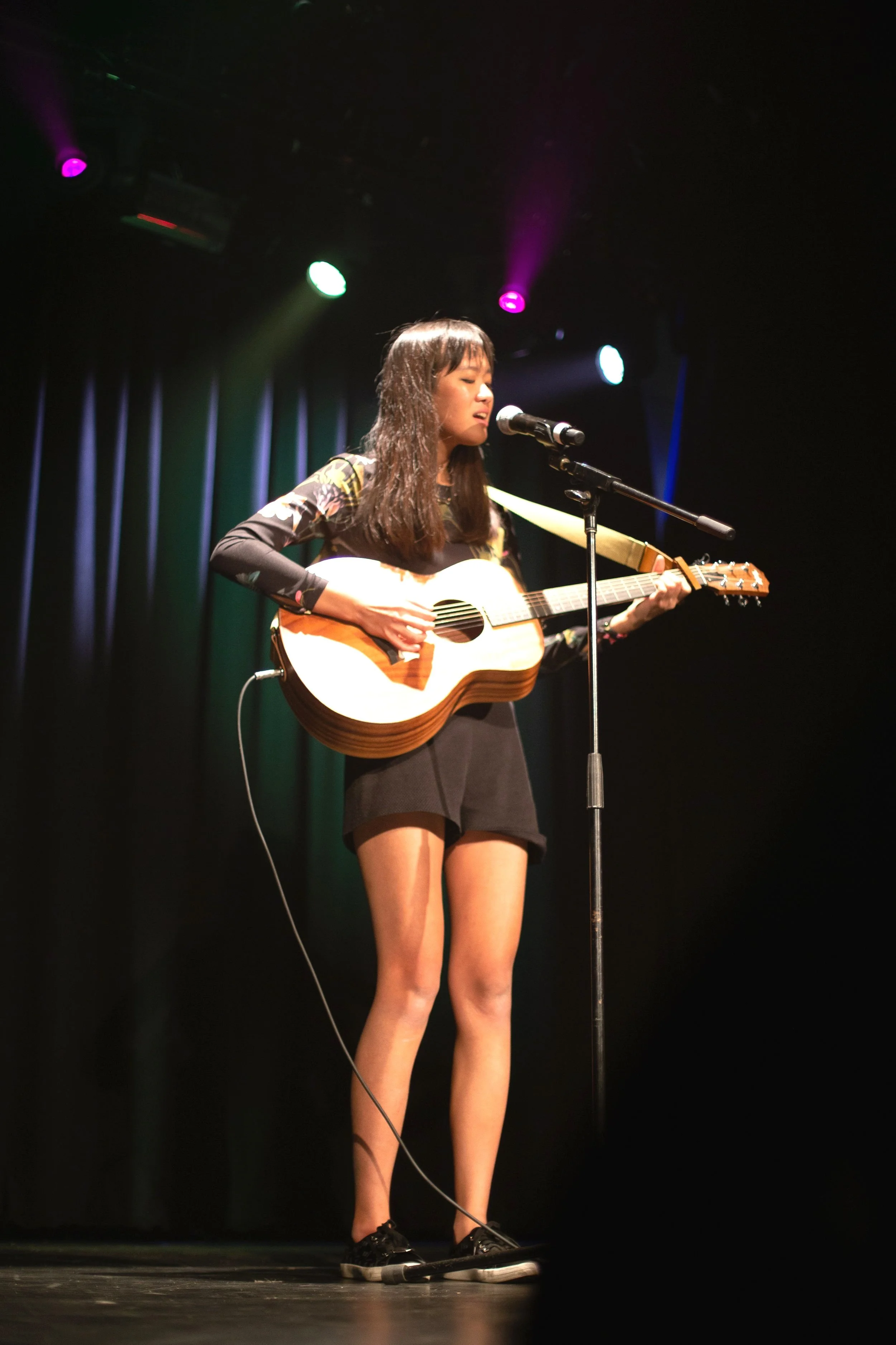 Our first performance was Brittney Quach, who sang an ethereal cover of Jhené Aiko’s “Eternal Sunshine”. Her beautiful tone and smooth runs put the crowd in a trance, and served as the perfect opener to our night. Katherine complimented Brittney’s technique and ability to emote through the music.