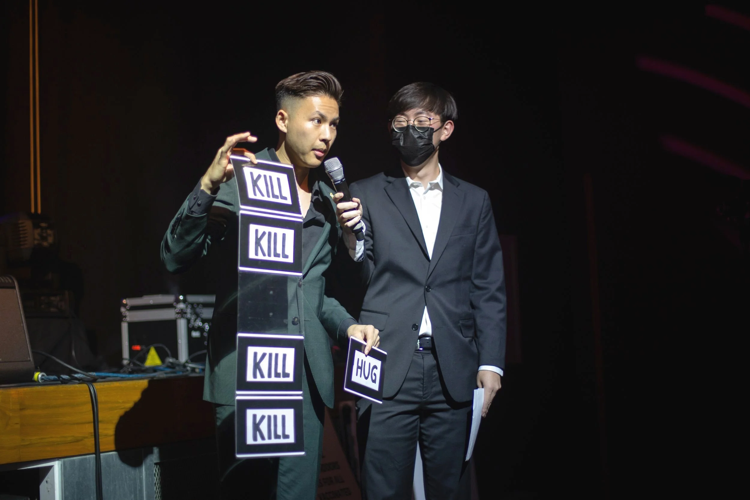 Although the night was coming to a close, our fourth contestant John Hemmer still brought excitement and *pizazz*. Although our emcees accidentally cut him off not once, but twice, John transitioned smoothly between each act and showcased his charisma. With his cautionary tales of consent and well-timed jokes, John’s well-rounded charming magic act got us all SHOOK, laughing in our seats, and wanting more.